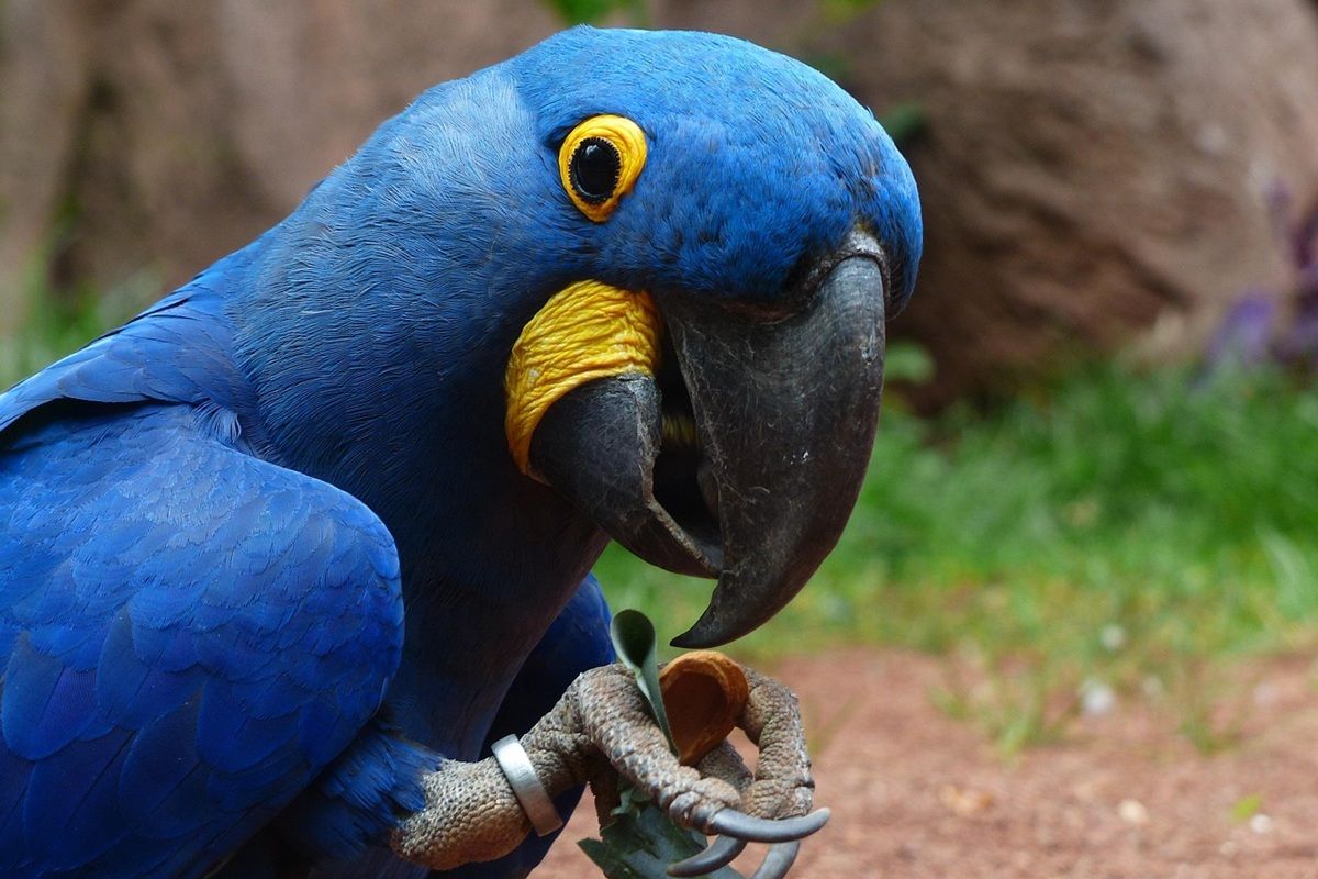 A arara-azul-grande é a maior espécie de arara do mundo, podendo atingir até 1 metro de comprimento e pesar cerca de 1,5 kg. Sua plumagem azul intensa e os detalhes amarelos ao redor dos olhos e da mandíbula tornam essa ave inconfundível.