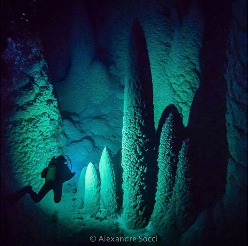 Durante o passeio o visitante vai ‘levitar’ próximo aos cones submersos, visualizar o esqueleto de um tamanduá que caiu na caverna há anos e fazer fotos incríveis.
