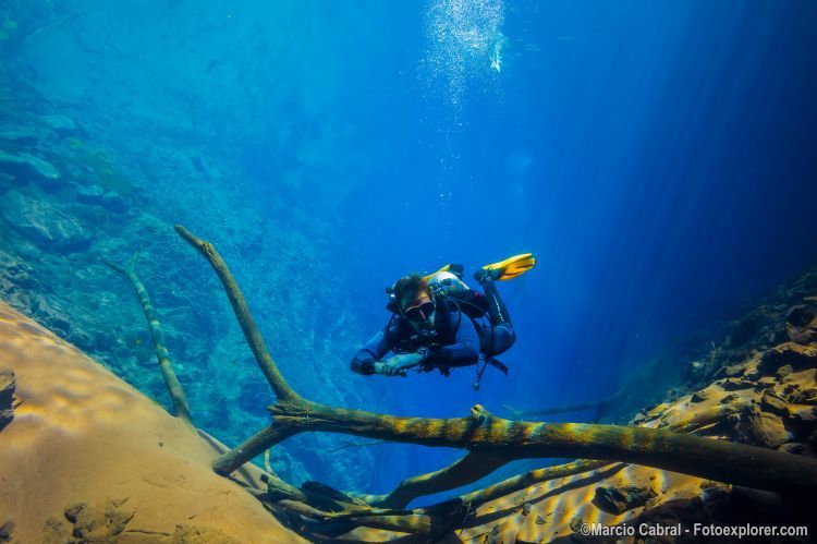 O lago do Abismo tem 80 metros de profundidade, então se a flutuação sobre as águas cristalinas do Anhumas já é incrível, o mergulho é de te fazer pensar que realmente está em outro planeta por tamanha beleza.