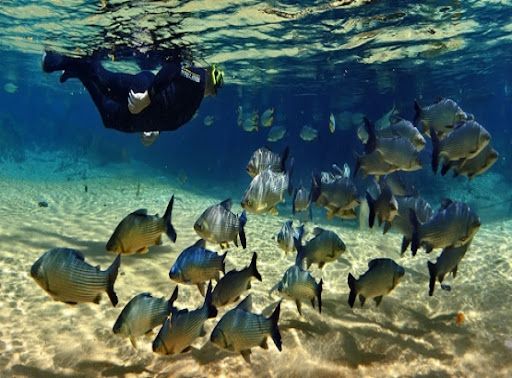 O passeio de Flutuação no Rio da Prata é uma experiência inesquecível. O acesso à água é feito a partir da nascente do Rio Olho D´água, uma espécie de ‘mundo encantado’ abaixo da superfície, com peixes, plantas e água cristalina com variados tons de azul. Você flutuará por aproximadamente 2.200 metros. A atividade dura em média três horas.