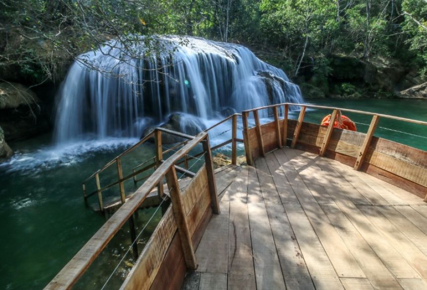 Uma das paradas para contemplação e banho é a famosa cachoeira Boca da Onça, que com 156 metros é considerada a mais alta de todo Estado. O lugar é muito bonito, com uma enorme queda d’água caindo em uma piscina natural.