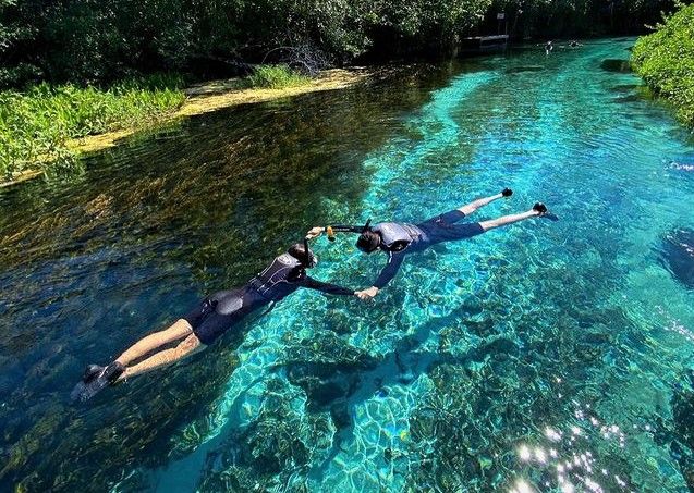 Os visitantes flutuam entre cardumes de peixes e admiram a rica vegetação subaquática, aproveitando a sensação de estar em um verdadeiro aquário. Todo o percurso é acompanhado por um guia credenciado e barco de apoio.