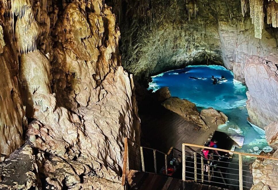 A Gruta do Mimoso foi fechada aos visitantes durante 15 anos e reabriu à visitação só em 2022. Ao contrário da Gruta Azul, nesta caverna você pode entrar na água, flutuar e até mesmo mergulhar!
