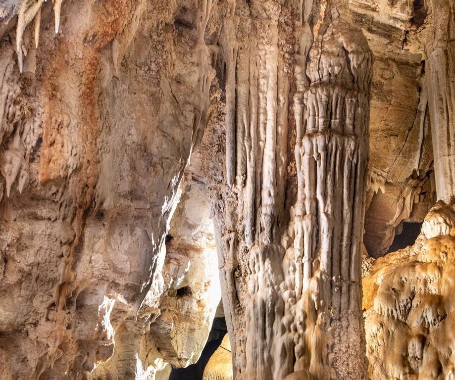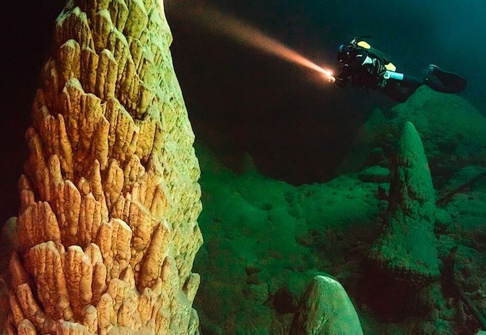 Milhares de estalactites e estalagmites o cercam assim que você desce em suas profundezas.