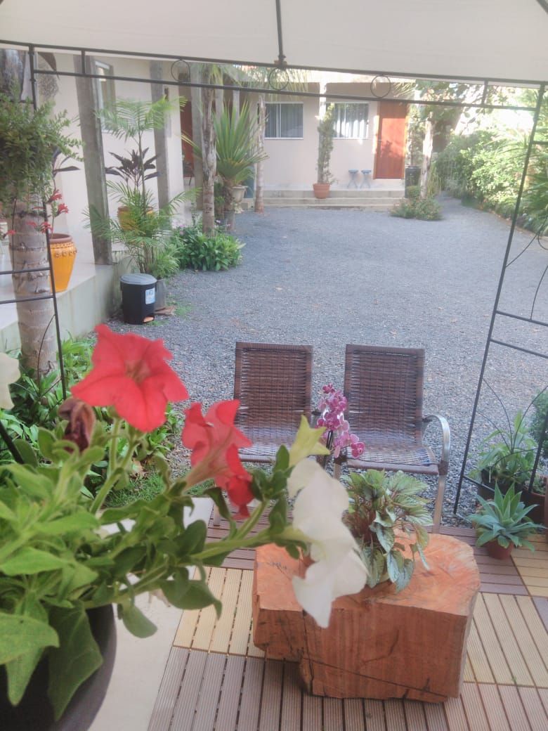 A fachada da Pousada Ponto Bonito é um charme, os jardins são bem cuidados e há muitas flores