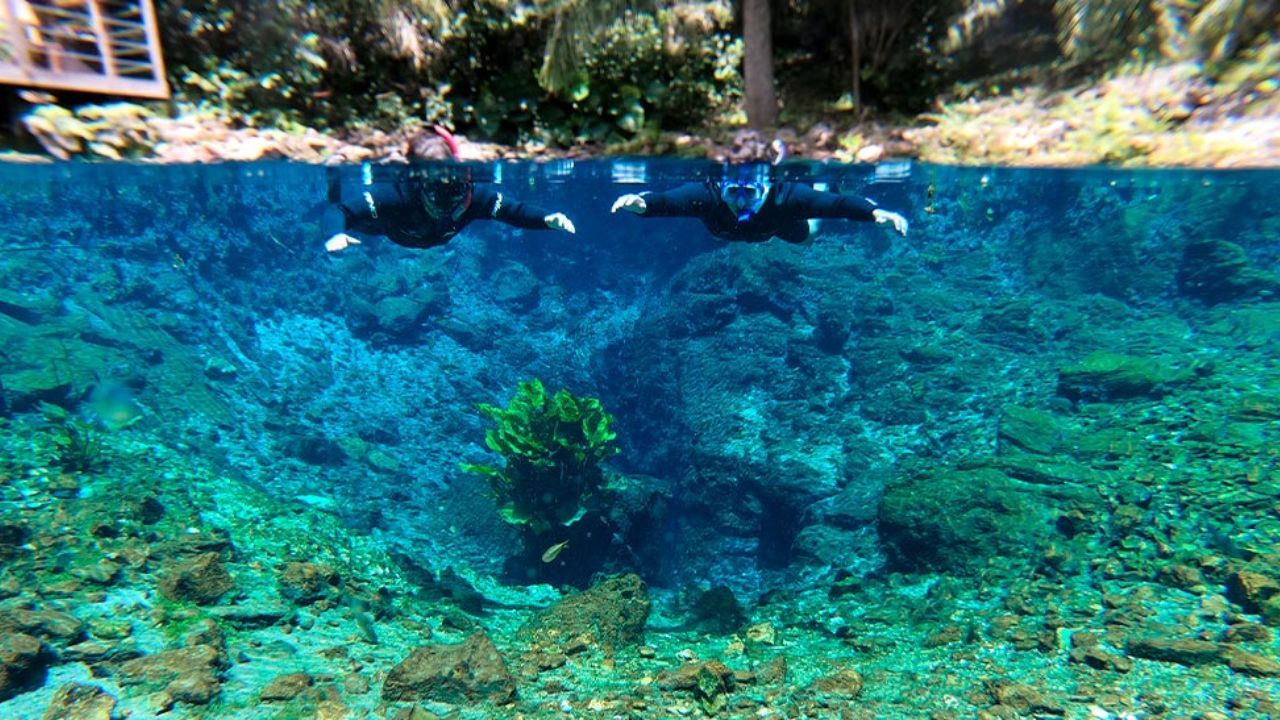 Além da flutuação, o mergulho com cilindro é uma atividade que permite explorar ainda mais as águas cristalinas de Bonito.