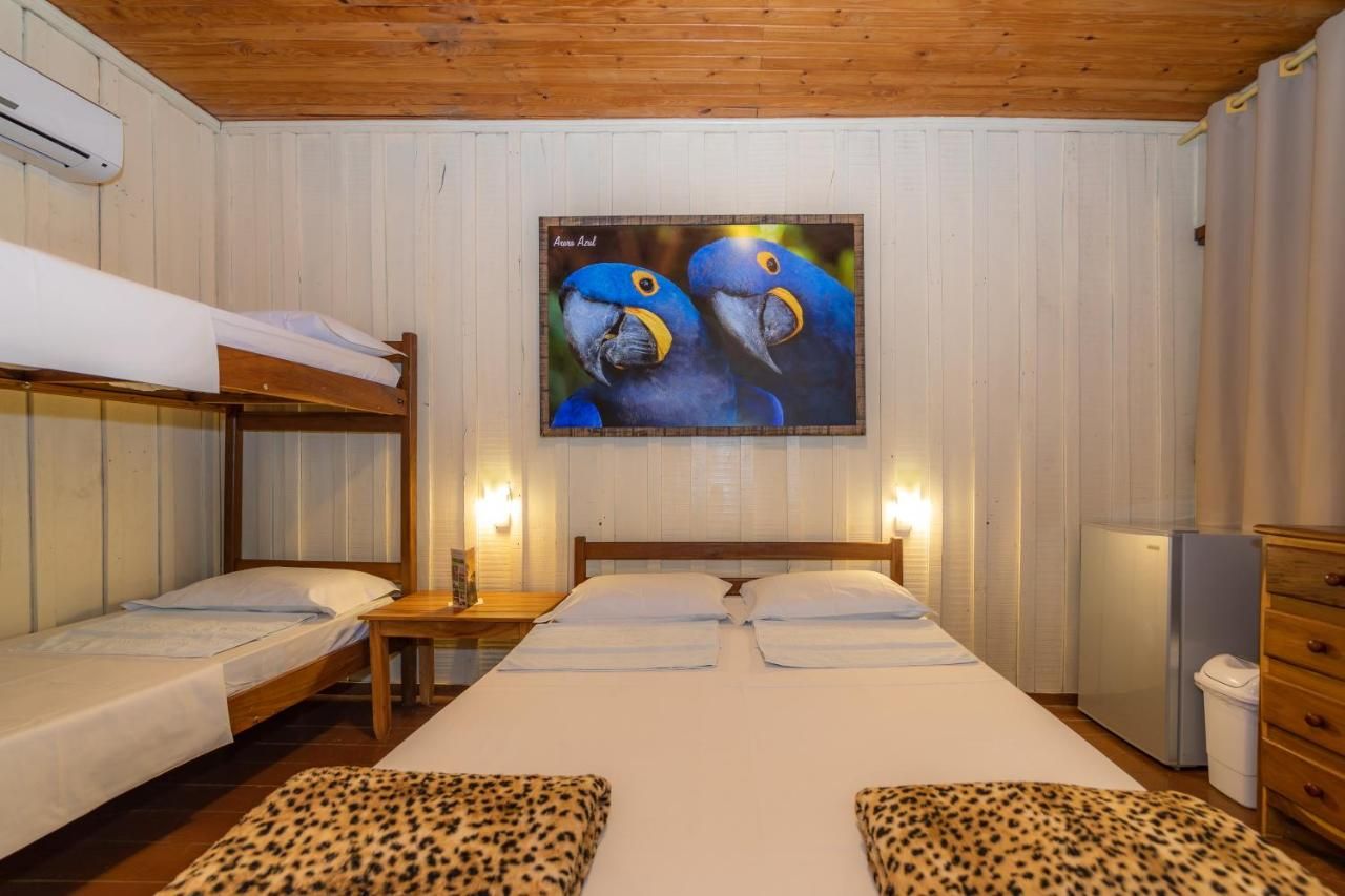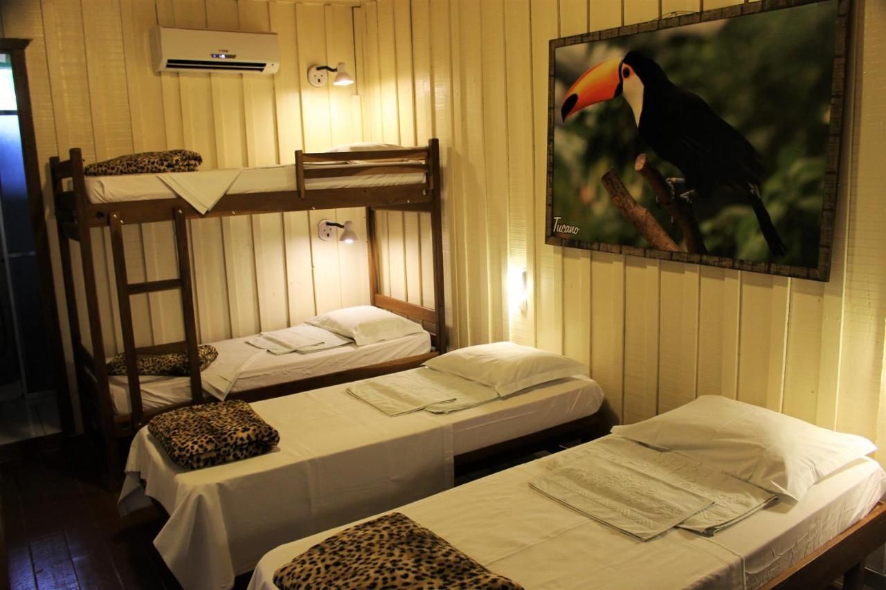 Fora isso, a estrutura do Jungle Lodge tem ambientes como bar, lavanderia comunitária, restaurante, sala de TV, área de lazer com piscina ao ar livre, redário beira rio e salão de jogos.