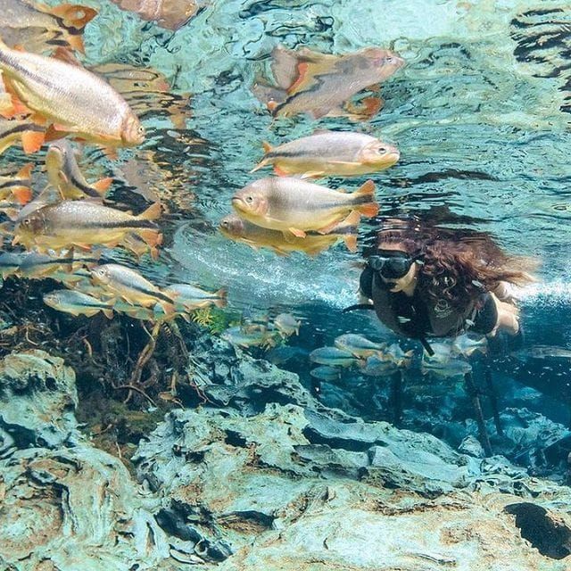 Em Bonito (MS) os mais famosos e cobiçados pontos turiticos são feitos com snorkel, aquela máscara com o tubinho que propícia que você veja o fundo do Rio ao mesmo tempo que está respirando!
