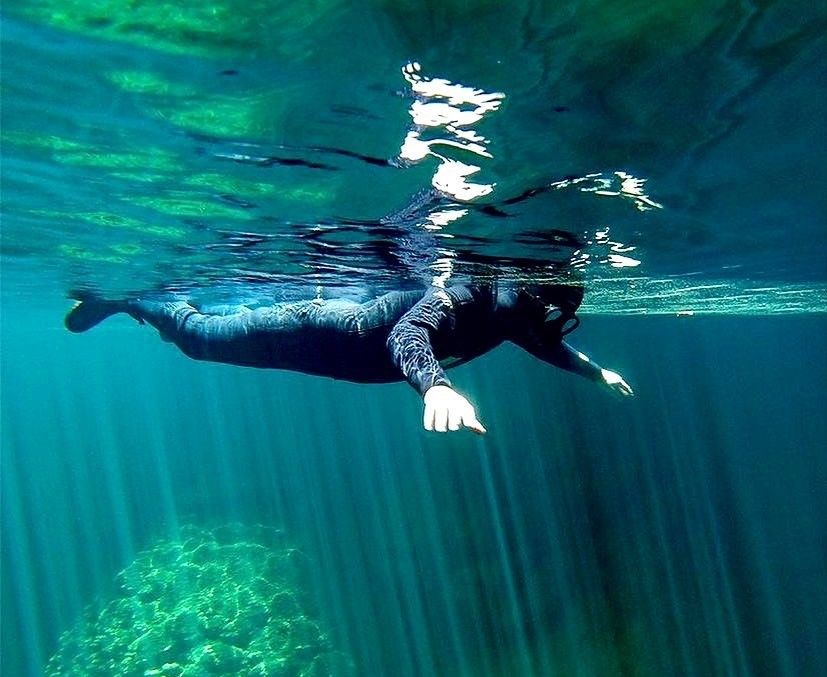O tom da água tem reflexos azuis e é a única flutuação onde se pode fazer apneia. Tem muitos peixes e a duração de pouco mais de 1h dentro da água.