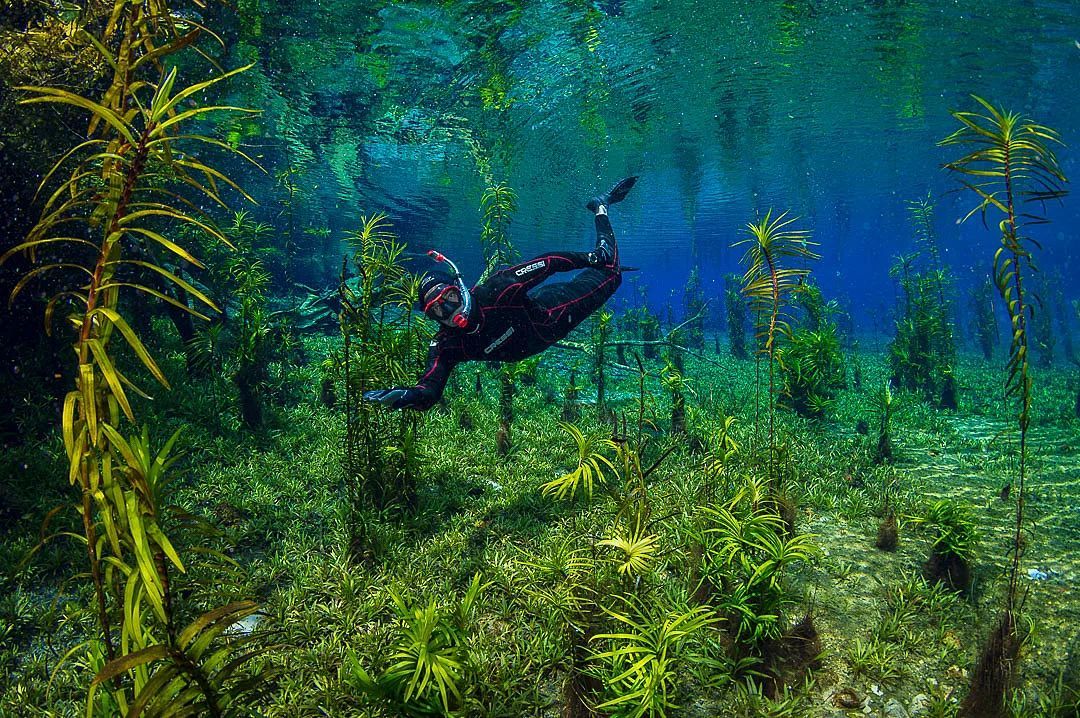 A Nascente da Serra tem uma vegetação subaquática muito mais exuberante quando comparada às outras flutuações da região.