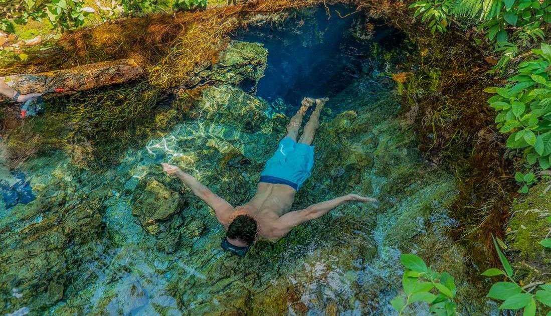 A nascente do Rio Chapena é um dos destaques da Ceita Core. Considerada uma joia rara escondida em uma caverna subaquática, ela é cheia de aventura e beleza natural. Sua profundidade ultrapassa os 155 metros e a água flui com força e pureza inigualáveis.