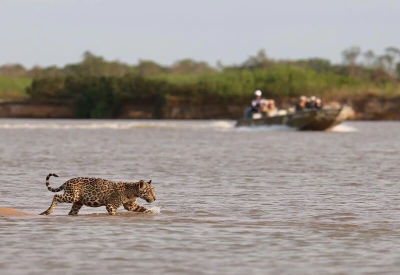 A onça-pintada é um dos animais mais procurados durante essa atividade, geralmente são avistadas no pantanal norte mas também podem ser encontradas no pantanal sul, nos rios e nas margens você pode avistar os temidos jacarés, as famosas sucuris e a divertida ariranha.