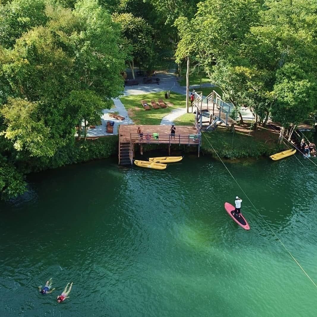 O local oferece uma boa infraestrutura com atividades como tirolesa, stand up paddle, caiaque e quadra de vôlei de areia.