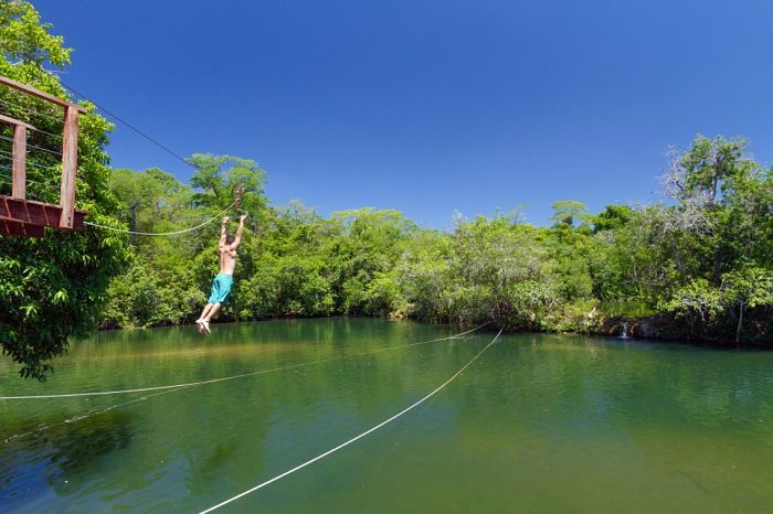 Há muito o que fazer na Serra Bodoquena! Você pode apreciar a fauna e a flora da mata atlântica enquanto relaxa no balneário ou mergulhar em rios de águas cristalinas durante o passeio de trilha.