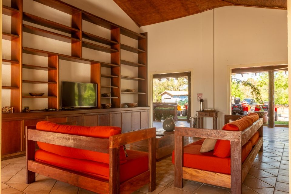 A fazenda pode receber até 460 pessoas em passeios de um dia, oferecendo uma infraestrutura completa de hospedagem e lazer.