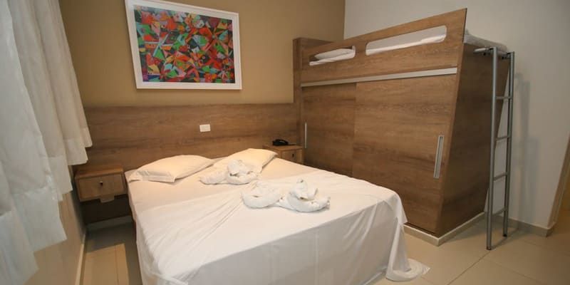 São 30 apartamentos mobiliados com cama box, roupas de cama de algodão, tv tela plana com canais por assinatura, ar condicionado, frigobar, telefone, secador de cabelos e cofre!