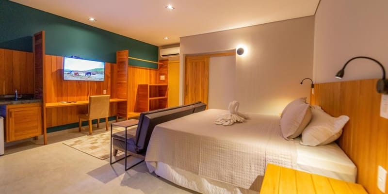 Planejado com móveis de alta qualidade e com janelas que absorvem a maior parte do som é um dos apartamentos mais modernos de Bonito! O hotel possui também um sistema de filtro de água calcária (muito importante em Bonito, porque a água calcária não deixa fazer espuma na hora do banho e ainda deixa o cabelo duro!).