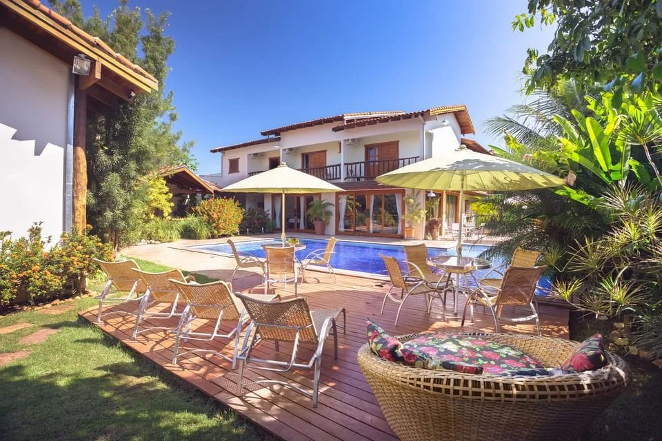 Outra vantagem de se hospedar aqui é poder aproveitar toda a área verde que circunda o hotel e começar o dia tomando seu café da manhã com uma vista incrível da piscina.