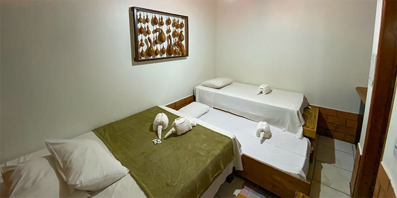 São 08 apartamentos entre single, duplos e triplos, que acomodam viajantes sozinhos, casais e famílias.
