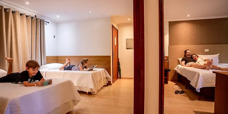 Você pode escolher entre vários tipos de acomodações: Apartamentos Premium, Apartamentos Premium Luxo, Suítes, Suítes Master, Suítes Family e Suítes Máster Plus, além, é claro, de apartamentos adaptados (com portas mais largas e barras de apoio).