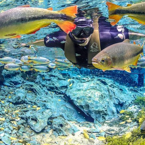O passeio dura mais ou menos 3 horas de flutuação com máscara e snorkel em um mundo encantado de peixes e água em vários tons de azul. Após o almoço com pratos típicos da região você poderá retornar a Bonito.