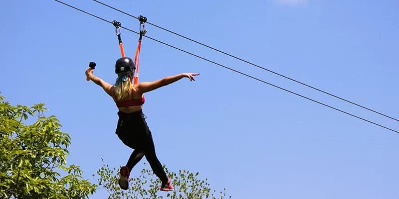 São 520 metros de descida (contando do início ao fim) com uma vista de tirar o fôlego! Após a tirolesa, começa então o desafio das plataformas suspensas que totalizam 23 obstáculos!