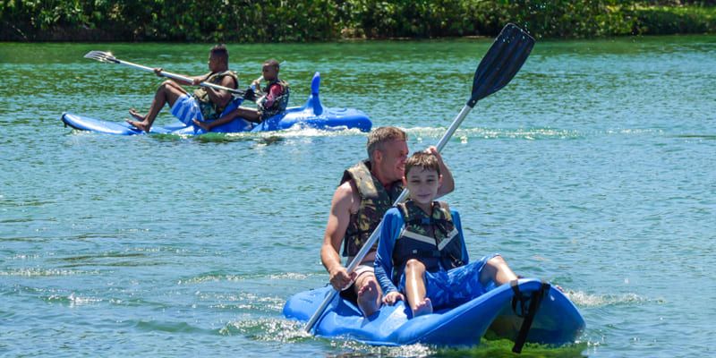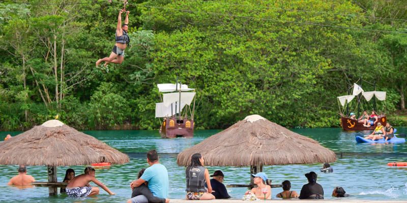 Além da tirolesa, caiaque, pedalinho, stand up paddle, há outras atividades bem divertidas como o tobogã de águas correntes e a quadra de areia.