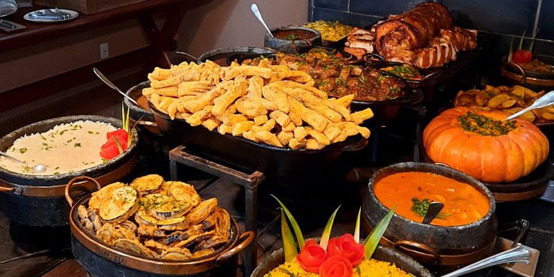 A refeição é feita no fogão à lenha e apresenta um cardápio variado com pratos típicos da região. Há inclusive opções alternativas para visitantes vegetarianos e veganos, tudo incluso no valor do passeio.