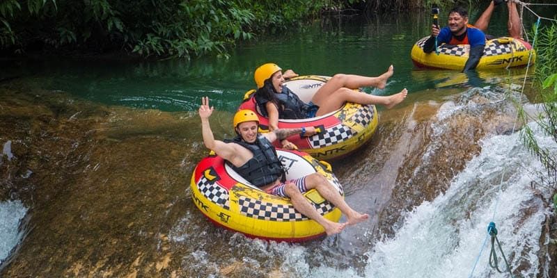 A descida pelo rio é feita com o visitante sobre as boias individuais e com acompanhamento de dois condutores. O percurso conta com três cachoeiras e três corredeiras ao longo de 1.200m e dura aproximadamente 45 minutos do início ao fim.