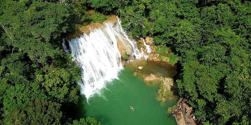 No total, a visita guiada passa por 8 paradas para banho entre cachoeiras e piscinas naturais. Para finalizar o passeio, a descida de bote desfrutando do cenário emocionante de aproximadamente 02 km pelo leito do Rio Betione.