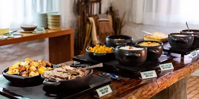 Após essa etapa, que dura cerca de 3 horas e meia, é hora de retornar para a sede e aproveitar o almoço (incluso no valor do passeio) típico das fazendas do cerrado que inclui, além de várias opções de pratos, o arroz de carreteiro e doces regionais. Você pode conferir aqui o pedaço de paraíso: Fazenda Ceita Corê.