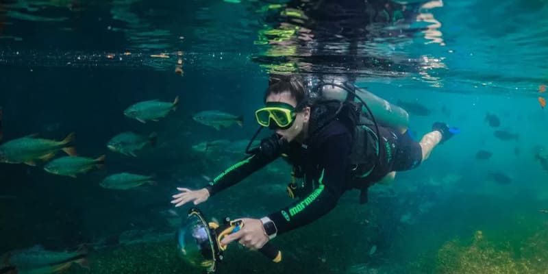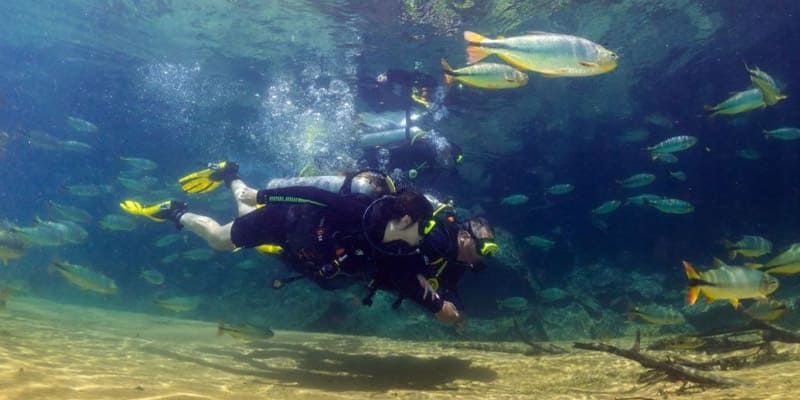 O passeio de mergulho com cilindro no Recanto Ecológico Rio da Prata, também é conhecido como mergulho autônomo, que é quando o mergulhador faz uso do equipamento scuba.