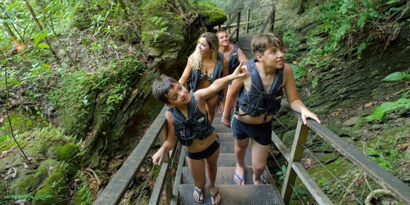 O ingresso dá acesso à trilha com acompanhamento de guia e equipamentos, uso do receptivo e balneário. A atração não permite o consumo de bebida alcoólica antes da atividade e nem a realização da atividade por gestantes. Crianças até 05 anos não pagam.