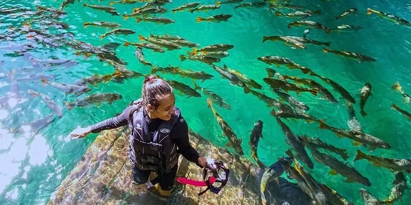 Em Bonito você pode fazer o passeio de flutuação no Balneário Praia da Figueira que fica a poucos minutos do centro da cidade. Ao contrário das flutuações de nascente, a Praia da Figueira oferece uma flutuação diferente, no trecho mais cristalino do Rio Formoso que fica bem próximo ao Rio Sucuri.
