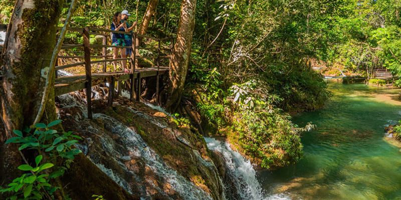 Ao todo são nove paradas de banho, sendo cinco cachoeiras, um ponto de banho com belíssimos peixes, a plataforma de salto na Cachoeira do Poção, um outro ponto com carretilha e uma tirolesa.