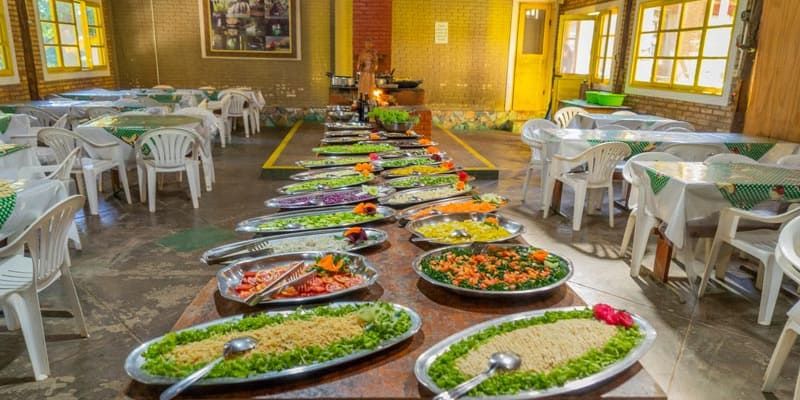 Após o turista realizar todas as atividades e gastar muita energia, o visitante recebe uma pausa para descanso e para saborear um delicioso almoço com gostinho de comida caseira.